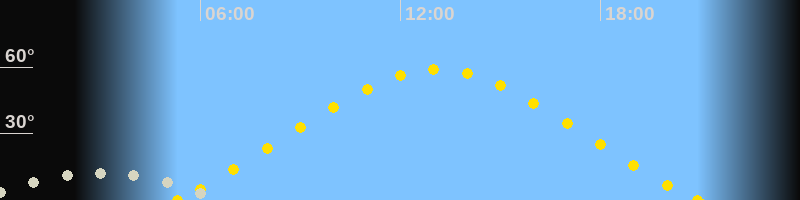 | Höchster Sonnenstand (Kulmination) | 13:06 Uhr (h = 58.9°) |