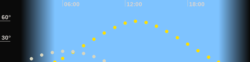 | Höchster Sonnenstand (Kulmination) | 13:06 Uhr (h = 59.5°) |