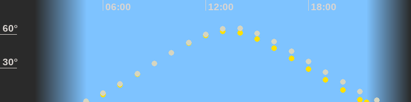 Höchster Sonnenstand (Kulmination)13:13 Uhr (h = 62.5°)