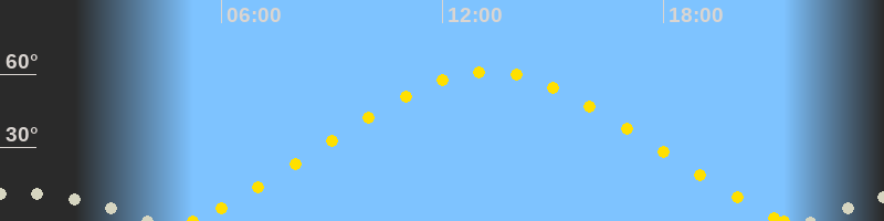 | Höchster Sonnenstand (Kulmination) | 13:16 Uhr (h = 61.1°) |