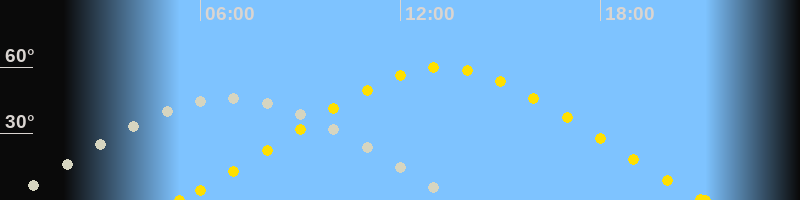 | Höchster Stand (Kulmination) | 06:45 Uhr (h=45.3°) |