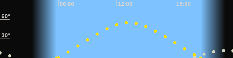| Höchster Sonnenstand (Kulmination) | 13:15 Uhr (h = 55°) |