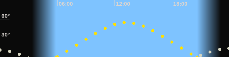 | Höchster Sonnenstand (Kulmination) | 13:15 Uhr (h = 54.7°) |
