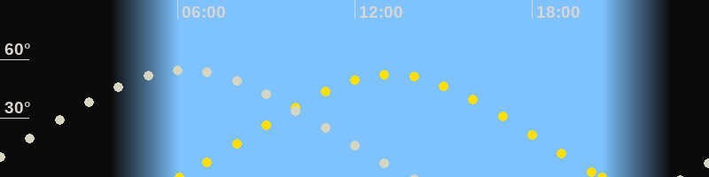 Höchster Stand (Kulmination)06:08 Uhr (h=54.4°)