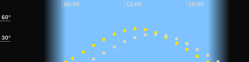 | Sonnenaufgang | 06:20 Uhr im Osten (αAz = 74.4°) |