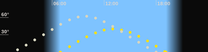 | Höchster Stand (Kulmination) | 09:46 Uhr (h=62.7°) |