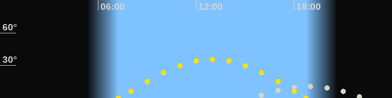 | Sonnenaufgang | 07:13 Uhr im Osten (αAz = 94.9°) |