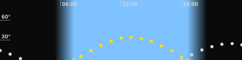 | Höchster Sonnenstand (Kulmination) | 12:58 Uhr (h = 34°) |