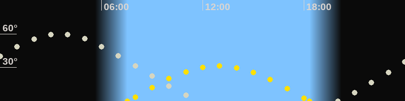 | Höchster Stand (Kulmination) | 03:25 Uhr (h=59.8°) |