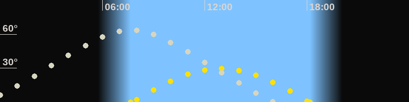 | Höchster Stand (Kulmination) | 07:38 Uhr (h=64°) |
