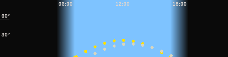 | Höchster Sonnenstand (Kulmination) | 12:54 Uhr (h = 26.7°) |