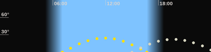 | Sonnenaufgang | 07:04 Uhr im Südosten (αAz = 113°) |