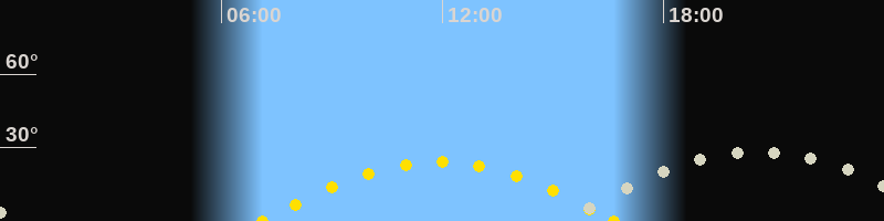 | Höchster Sonnenstand (Kulmination) | 11:53 Uhr (h = 24.1°) |