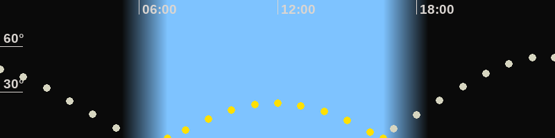| Höchster Sonnenstand (Kulmination) | 11:53 Uhr (h = 22.9°) |