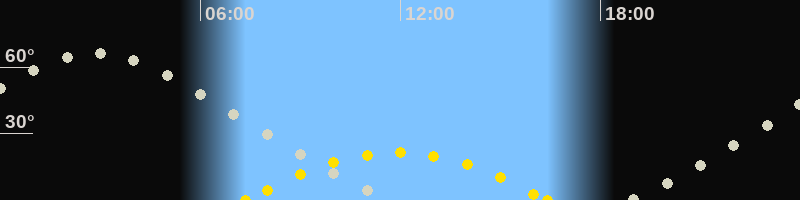 | Höchster Sonnenstand (Kulmination) | 11:54 Uhr (h = 21.5°) |
