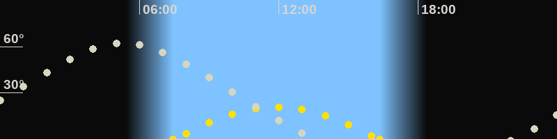 | Höchster Sonnenstand (Kulmination) | 11:54 Uhr (h = 20.7°) |