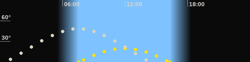 | Höchster Stand (Kulmination) | 07:33 Uhr (h=48.7°) |