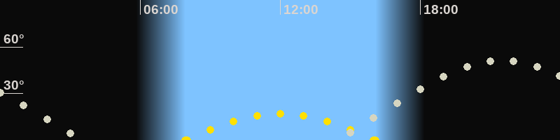 | Höchster Sonnenstand (Kulmination) | 12:00 Uhr (h = 17°) |