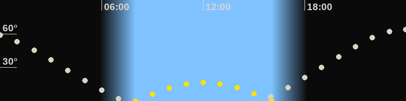 Höchster Sonnenstand (Kulmination)12:01 Uhr (h = 16.6°)