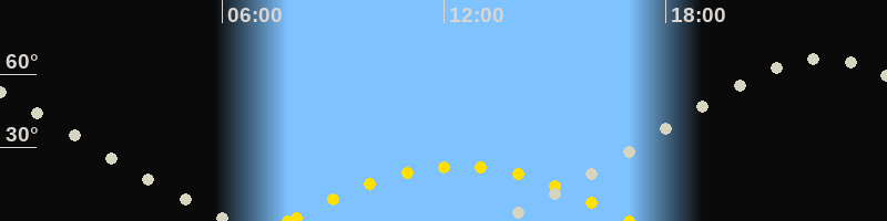 | Höchster Sonnenstand (Kulmination) | 12:23 Uhr (h = 22.5°) |