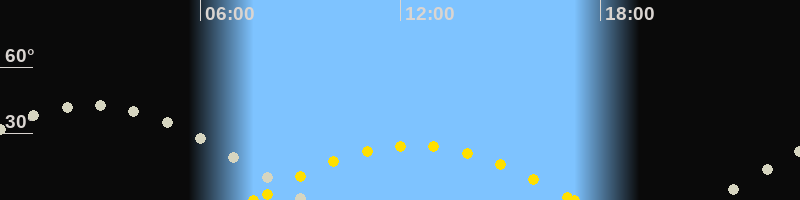 | Höchster Sonnenstand (Kulmination) | 12:24 Uhr (h = 24.6°) |
