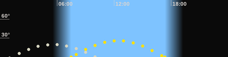 Höchster Sonnenstand (Kulmination)12:24 Uhr (h = 25.9°)