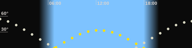 Höchster Sonnenstand (Kulmination)12:21 Uhr (h = 33.6°)