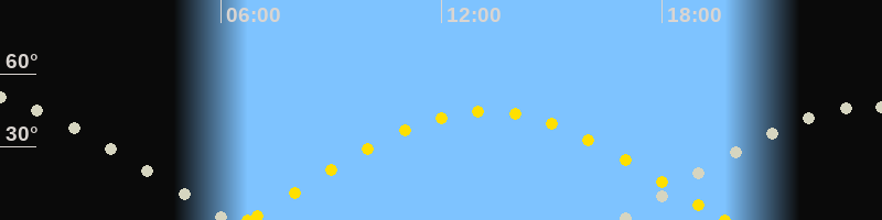 | Höchster Sonnenstand (Kulmination) | 13:13 Uhr (h = 44.6°) |