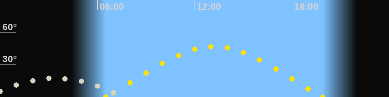 | Höchster Sonnenstand (Kulmination) | 13:11 Uhr (h = 46.9°) |