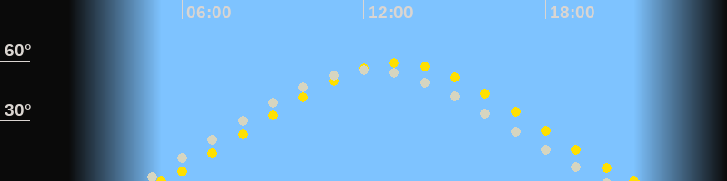 | Höchster Sonnenstand (Kulmination) | 13:06 Uhr (h = 58.8°) |