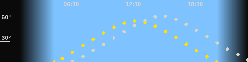 | Höchster Sonnenstand (Kulmination) | 13:06 Uhr (h = 59.7°) |