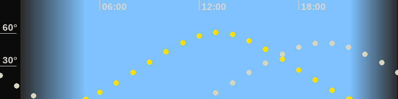 | Höchster Sonnenstand (Kulmination) | 13:07 Uhr (h = 60.6°) |