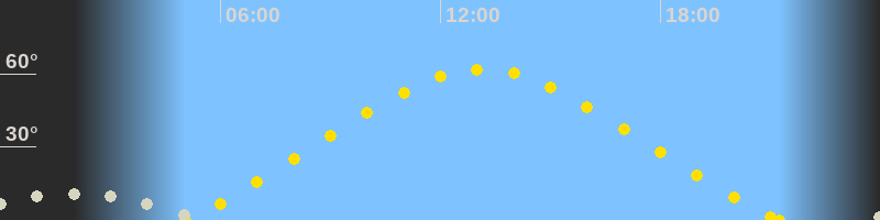 Höchster Sonnenstand (Kulmination)13:08 Uhr (h = 61.8°)