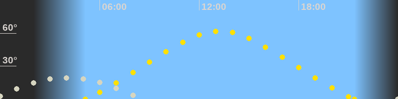 | Höchster Sonnenstand (Kulmination) | 13:15 Uhr (h = 62°) |