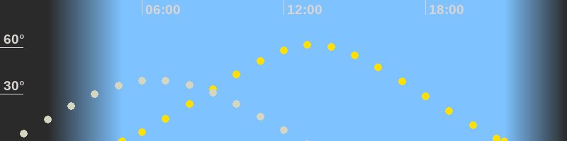 Höchster Sonnenstand (Kulmination)13:15 Uhr (h = 61.6°)