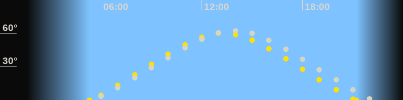 | Höchster Sonnenstand (Kulmination) | 13:16 Uhr (h = 60.3°) |