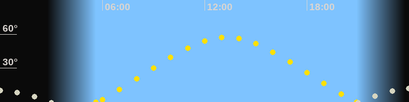| Höchster Sonnenstand (Kulmination) | 13:16 Uhr (h = 57.5°) |