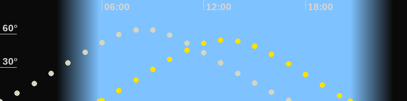 Höchster Stand (Kulmination)08:23 Uhr (h=64°)