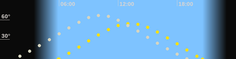 | Höchster Stand (Kulmination) | 10:08 Uhr (h=66.9°) |