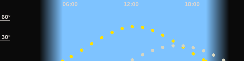 | Sonnenaufgang | 06:09 Uhr im Osten (αAz = 70.3°) |