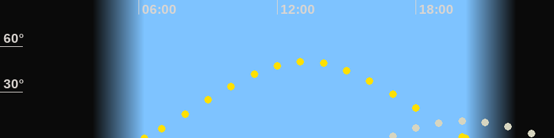 | Sonnenaufgang | 06:14 Uhr im Osten (αAz = 72°) |