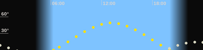 | Höchster Sonnenstand (Kulmination) | 13:11 Uhr (h = 49°) |