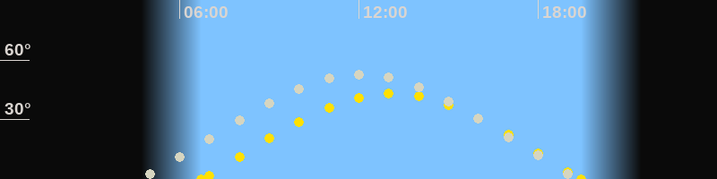 | Höchster Sonnenstand (Kulmination) | 13:06 Uhr (h = 43°) |