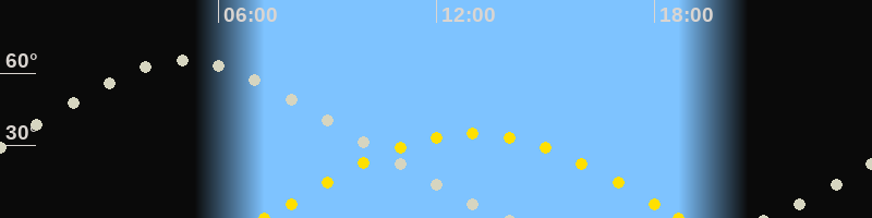 | Sonnenaufgang | 07:16 Uhr im Osten (αAz = 96°) |