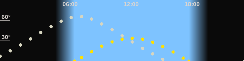 | Sonnenaufgang | 07:20 Uhr im Osten (αAz = 97.9°) |