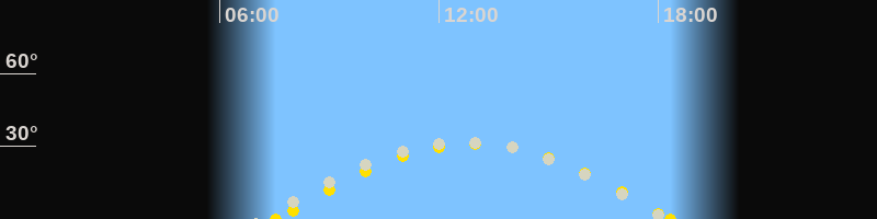 | Höchster Stand (Kulmination) | 12:44 Uhr (h=32.3°) |