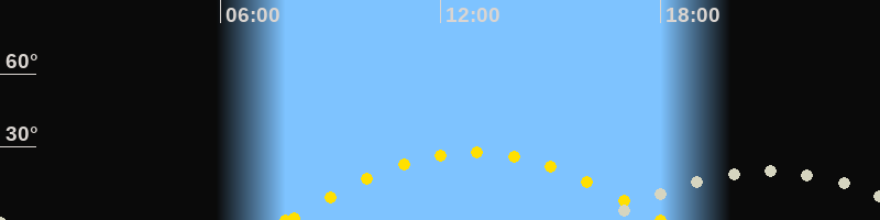 | Sonnenuntergang | 18:00 Uhr im Westen (αAz = 252.4°) |