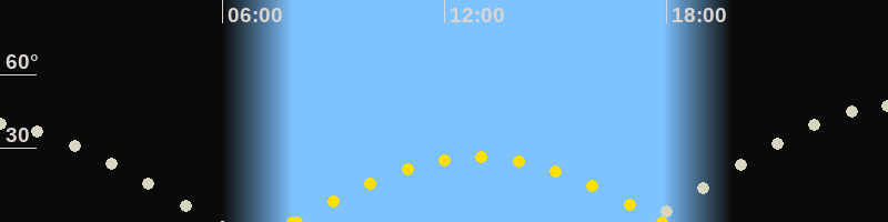 Höchster Sonnenstand (Kulmination)12:54 Uhr (h = 26.5°)