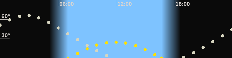 | Höchster Sonnenstand (Kulmination) | 11:53 Uhr (h = 24.8°) |