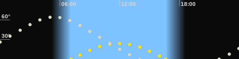| Höchster Sonnenstand (Kulmination) | 11:53 Uhr (h = 23.9°) |